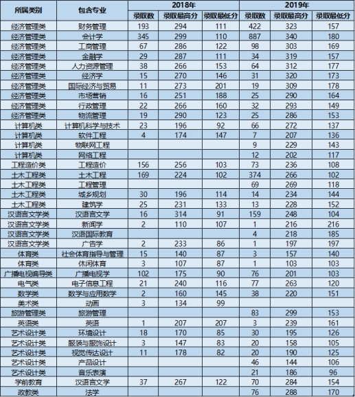 云南大学滇池学院2018、2019年专升本录取情况