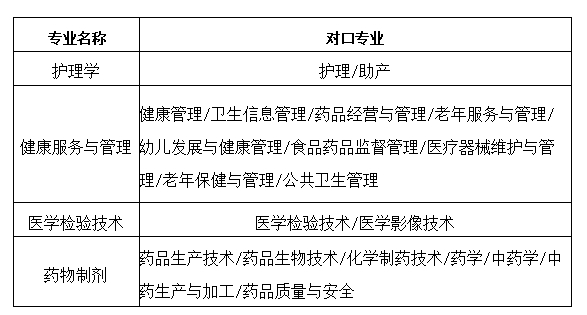 参考招生专业及对口专业列表: