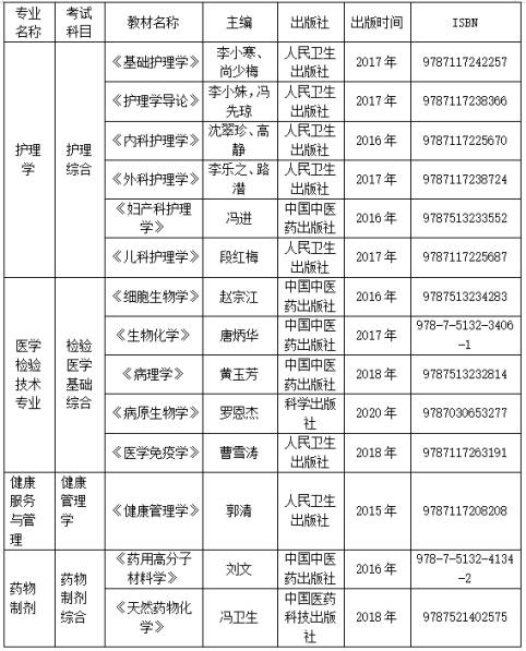 2021年我院“专升本”各招生专业的专业考试科目、参考书籍如下: