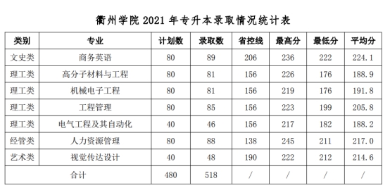 附件:衢州学院2021年专升本录取情况统计表.pdf