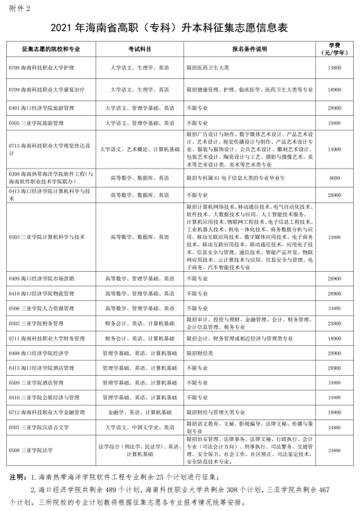根据我省划定各学校各专业录取最低控制分数线,个别高校部分专业生源不足,仍有剩余计划。为更好地完成专升本扩招工作,给考生增加录取机会,决定将剩余招生计划向与征集招生专业的考试科目相同、分数达到80分(含)以上且未被学校预录取的考生征集志愿。参与征集志愿的学校及专业信息详见附件2。