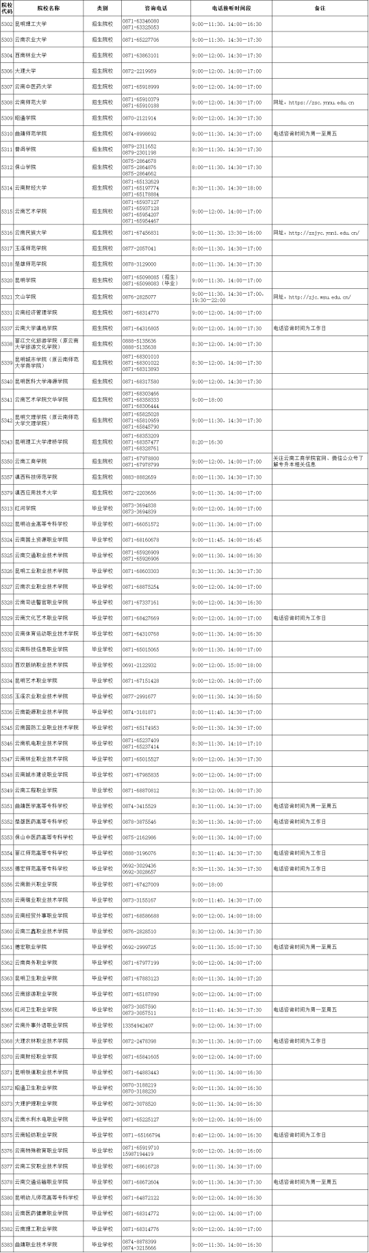 云南省2024年普通高等学校专升本报名期间咨询电话