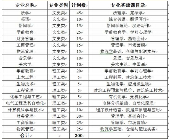第十一条  学院专升本招生计划、专业基础课信息通过学院网站、学院官方微信平台等形式向考生和社会公布,2020年学院专升本招生信息如下表所示: