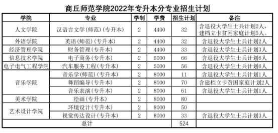 2022年商丘学院专升本招生计划及近三年招生录取分数线