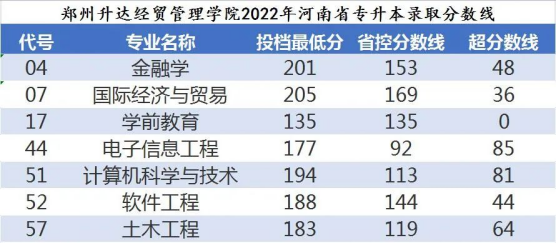 2022年郑州升达经贸管理学院专升本录取分数线