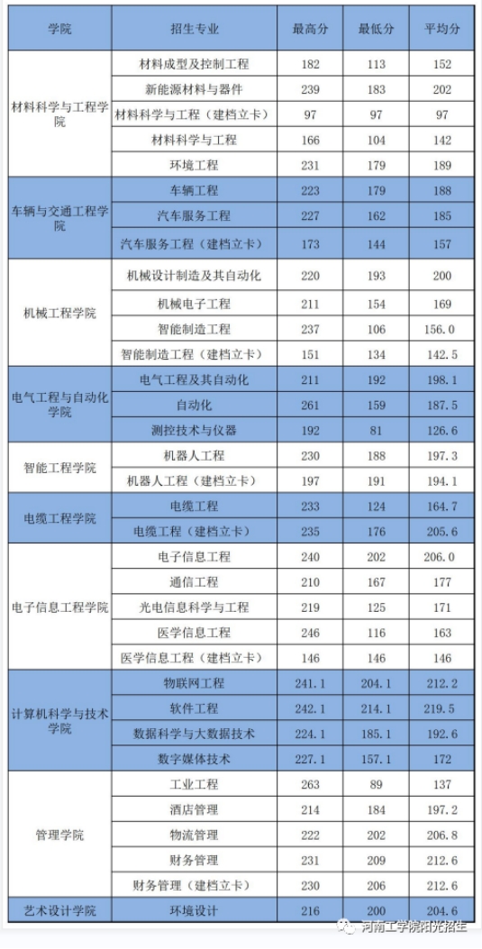 2022年洛阳理工学院专升本录取分数线(不含大学生士兵、建档立卡贫困家庭)