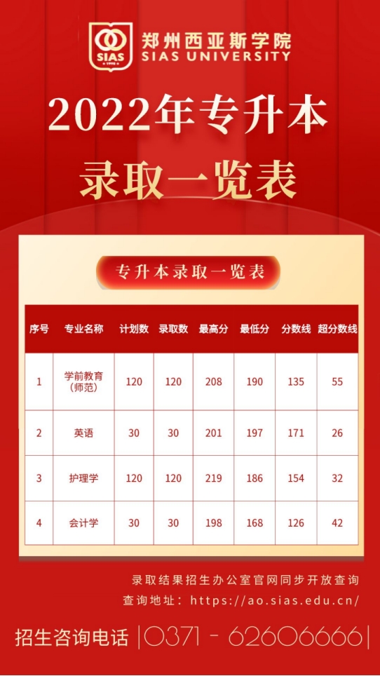 2022年商丘学院专升本招生计划及近三年招生录取分数线