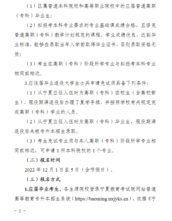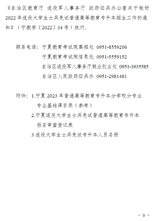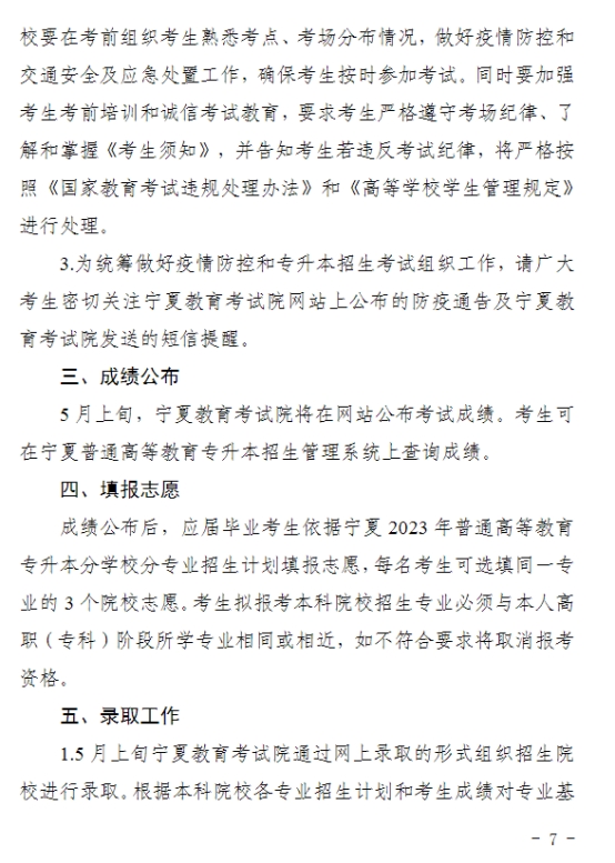 2023年宁夏专升本招生考试工作的通知