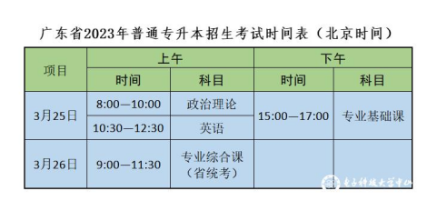 (二)普通专升本招生考试时间为2023年3月25日(星期六)至26日(星期日)两天,具体安排见下表: