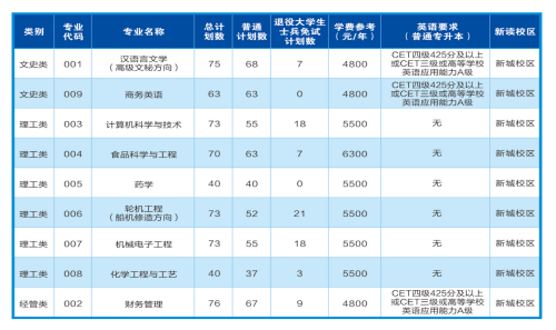 注:退役大学生士兵免试专升本招生专业对英语不作特殊要求。