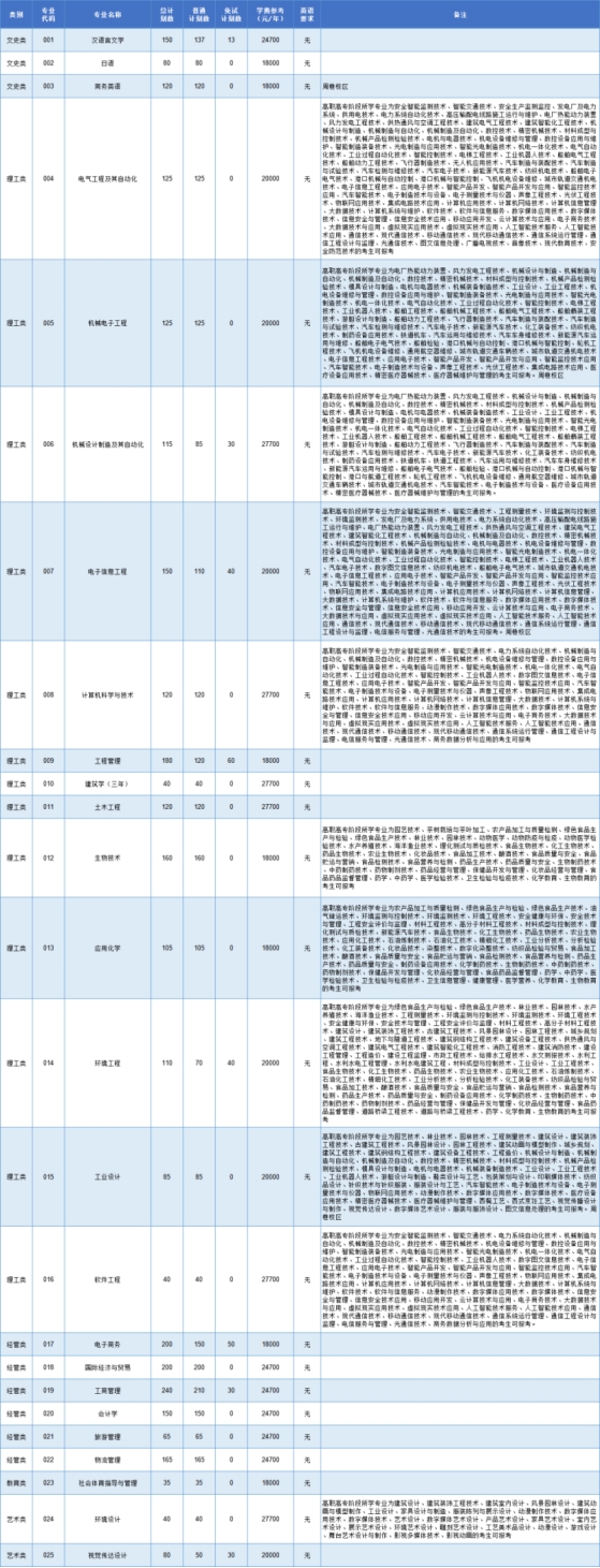 2023年学校专升本普通类根据专业对口原则在文史、理工、经管、教育、艺术五个招考类别里设置25个专业招生,共计划招生2707名,其中理工类的软件工程专业、教育类的社会体育指导与管理为今年新增专业,分专业招生计划见下表: