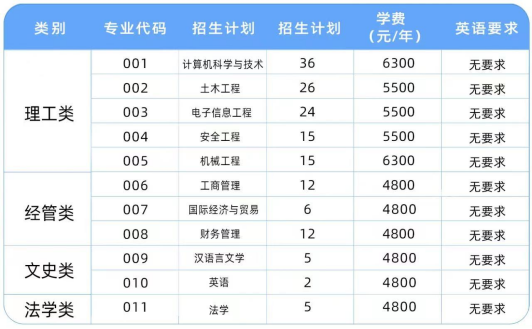 第九条 学校将招生专业分为理工、经管、文史和法学四个招生类别,按专业对口原则实施招生。具体招生类别及招生专业如下表,最终各招生专业计划数以浙江省教育考试院公布为准。