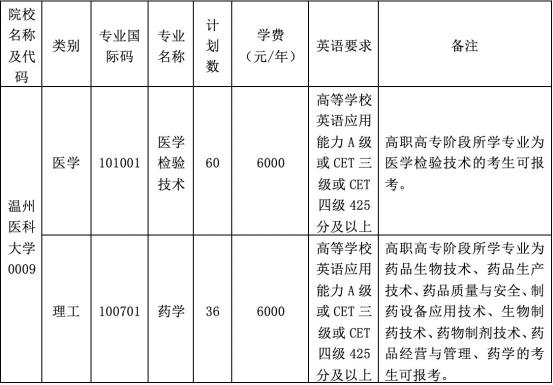 通讯地址:温州市茶山高教园区温州医科大学招生办;