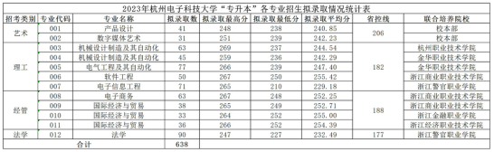 2023年杭州电子科技大学“专升本”投档结果公布