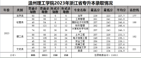 5月15日,温州理工学院2023年“专升本”招生录取工作圆满结束,完成各专业招生计划,并根据相关文件精神,末位同分投档考生一并录取。我校今年招生计划总数1043人,实际录取1169人,其中退役大学生士兵免试专升本录取158人,普通专升本录取1011人,因同分带入超计划录取126人。