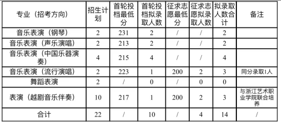 浙江音乐学院关于2023年“专升本”招生各专业(招考方向)拟录取情况表