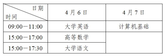 答:我省2024年普通高校专升本考试于4月6日、7日统一组织进行。高等数学、大学语文、大学英语、计算机基础均实行全省统一考试。各科目考试时间(北京时间)安排如下: