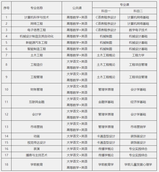 2024年安徽文达信息工程学院专升本拟招生专业及考试科目