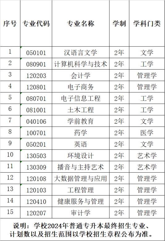 安徽外国语学院2024年普通高校专升本招生章程