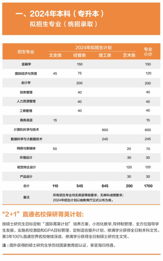 温州商学院2024年专升本招生计划