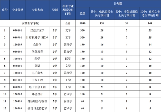安徽新华学院2025年普通高校专升本拟招生方案的通知
