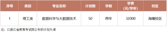 第九条 招生计划:经学校研究,2025年学校设置退役大学生士兵免试专升本招生专业1个,总计划50人,详见下表:
