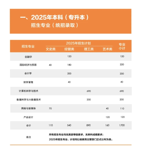 温州商学院2025年专升本招生简章