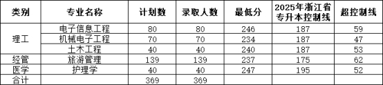 浙大城市学院2025年浙江省普通专升本专业录取情况表