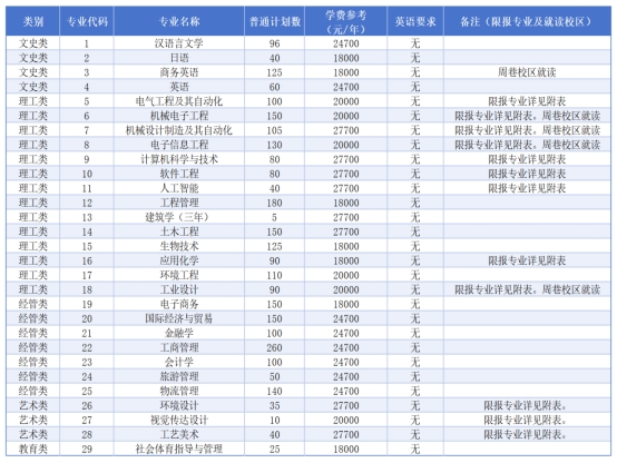 注:招生计划及对应的招生专业范围以浙江省教育考试院公布为准;未备注限报专业的对高职高专阶段所学专业不作要求,对应类别下的专业均可报考;各专业学费、住宿费按学年收取,最终以物价部门批准公布为准。