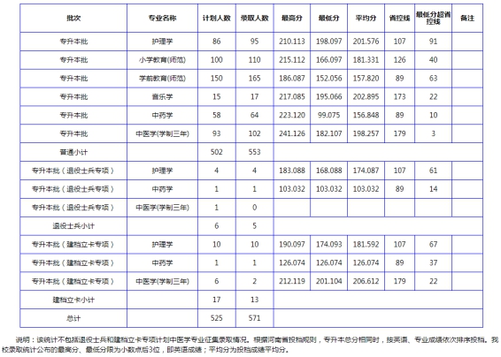 南阳理工学院2020年河南省专升本录取分数情况统计