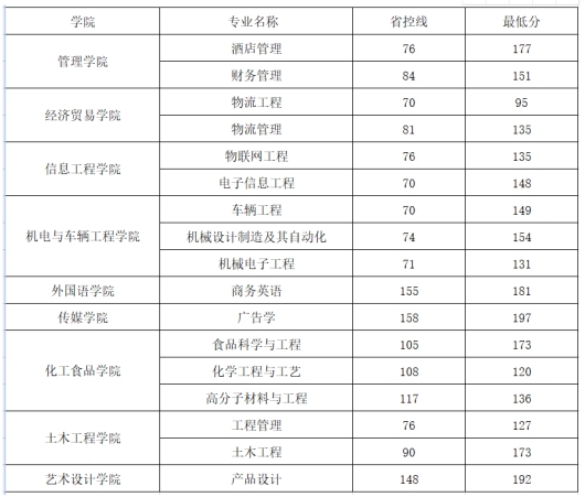 2022年洛阳理工学院专升本录取分数线(不含大学生士兵、建档立卡贫困家庭)