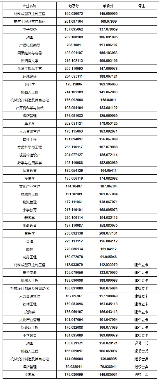 2022年洛阳理工学院专升本录取分数线(不含大学生士兵、建档立卡贫困家庭)
