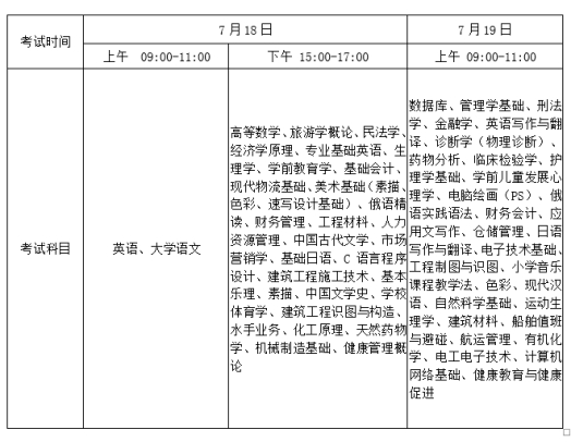 高职专科升本科考试科目及时间安排