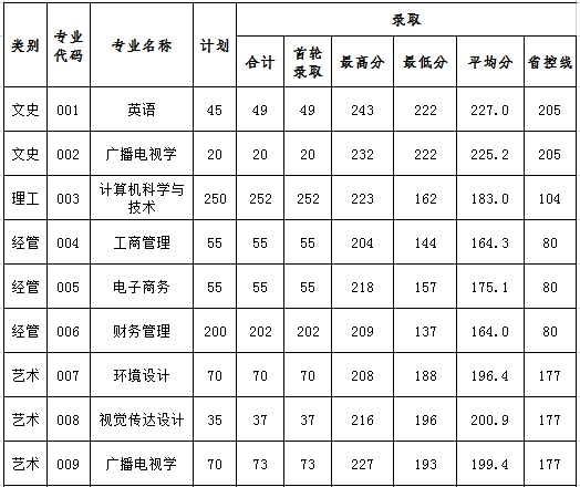 2020年浙江万里学院专升本录取分数线