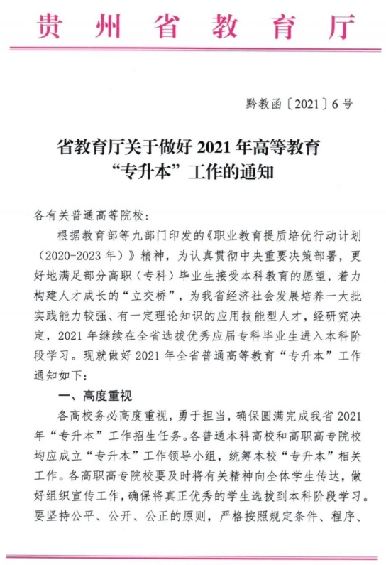 贵州交通职业技术学院关于做好2021年“专升本”报名工作的通知